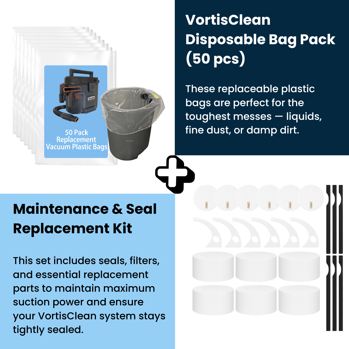 Get the official maintenance kit and the disposable bag pack at no extra cost.